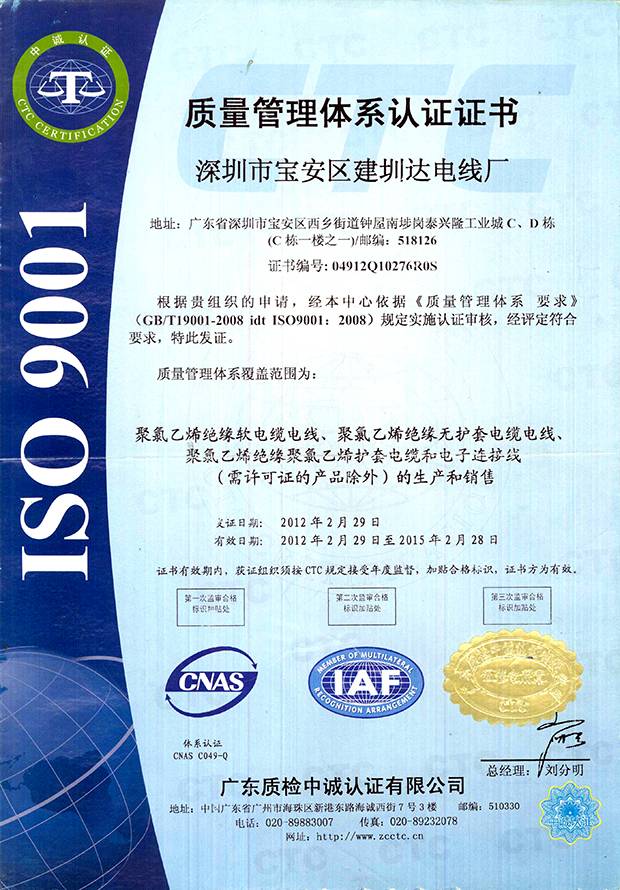 建圳達(dá)電纜立足于中國深圳,擁有技術(shù)精湛的隊(duì)伍、現(xiàn)代化生產(chǎn)設(shè)備、精密的檢測儀器,從原材料、生產(chǎn)、成品嚴(yán)格按照國家標(biāo)準(zhǔn)檢測,通過多個認(rèn)證。